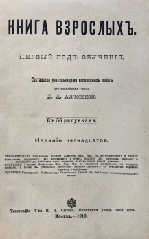 "Книга взрослых", разработанная под руководством Х. Д. Алчевской, содержала тексты для чтения и научно-популярные рассказы и заметки, была рекомендована для воскресных и вечерних классов для взрослых и рабочих. В книге были выделены религиозно-нравственный, естественно-научные, исторический и литературный отделы. Также в издание входили тексты на церковно-славянском языке. Христина Даниловна Алчевская (1841-1920) — педагог, просветитель, известна своей неутомимой деятельностью на пользу народного образования. С 1860-х годов Х. Д. Алчевская стояла во главе харьковской воскресной школы, в которой по ее инициативе была введена система педагогических советов и педагогических дневников учащихся. Книга представляет историческую и культурную ценность!