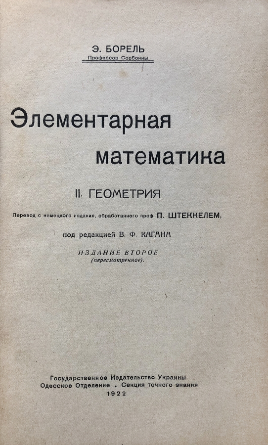 Перевод с немецкого издания, обработанного профессором П. Штеккелем под редакцией В. Ф. Кагана. Учебник математики в Германии и Франции начала XX века после реформы преподавания математики в средних учебных заведениях. Часть вторая, касающаяся вопросов геометрии. Эмиль Борель — французский математик и политический деятель. Пре зи дент Французской академии наук. Книга представляет историческую и культурную ценность!
