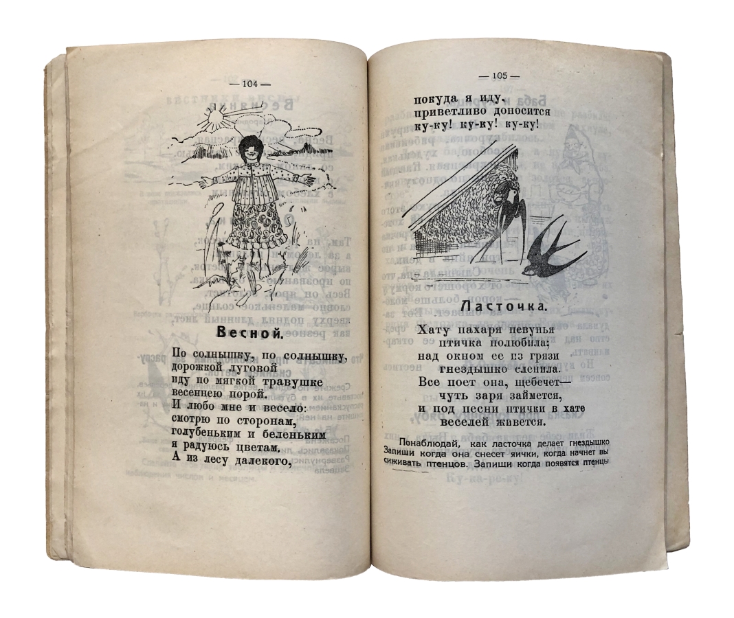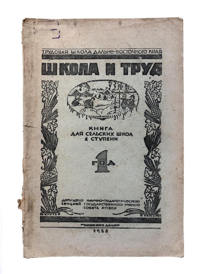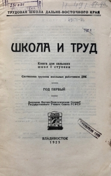 Книга для сельских школ I ступени (1-й год). Из предисловия: «Школа и Труд» первый опыт на Дальнем Востоке составления книги для чтения и работы в школе применительно к местным условиям. Составителями были использованы книги для чтения, появившиеся в начале XX века в Москве и Ленинграде, и материал местного характера. Как первый опыт и составленная к тому же в срочном порядке, книга, разумеется, далека от совершенства. Выпуская ее, составители имели целью лишь начать работу, в которой, несомненно, примет участие в дальнейшем все дальневосточное учительство. Книга представляет историческую и культурную ценность!