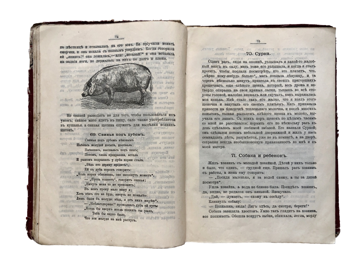Владельческий переплет. Есть потертости на переплете. Печати несуществующих библиотек. Некоторые иллюстрации раскрашены цветным карандашом.