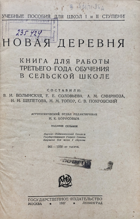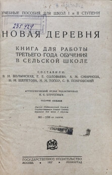Новая деревня — книга для чтения и работы в сельской школе. В тексте множество черно-белых иллюстраций. Учебник, памятник эпохи, прекрасный образчик советской пропаганды. Книга на своем примере дает понять как на заре советской власти боролись с безграмотностью среди взрослого населения. Как была образована и получила развитие системы народного образования, бесплатного образования. Книга представляет историческую и культурную ценность!