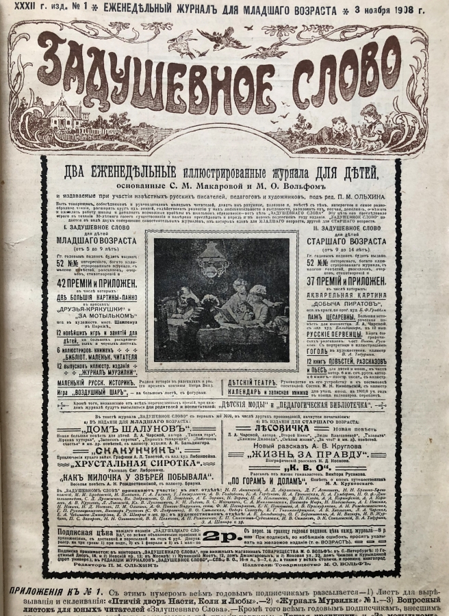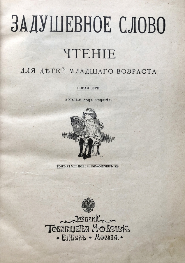 «Задушевное слово» — иллюстрированный журнал для семейного чтения. Издание детского иллюстрированного журнала было предпринято выдающимся русским книгоиздателем Маврикием Осиповичем Вольфом (1825–1883). Название журнала придумал писатель И. А. Гончаров, и не ошибся. «Задушевное слово» на много лет стало любимым иллюстрированным журналом для семейного чтения, собеседником, другом и помощником для детей разных возрастов на все случаи жизни. В журнале для детей младшего возраста печатались раскрашенные и черно-белые картины, сказки и мелкие рассказы, песенки с нотами, стихотворения, рассказы из священной истории, коротенькие статьи по естествознанию, завлекательные рассказы и повести из детской жизни, занимательные игры, интересные занятия, задачи, загадки. Книга представляет историческую и культурную ценность! В хорошем состоянии. «Задушевное слово — это самое подходящее чтение для детей и юношества, как по выбору статей, так и по содержанию. Можно поручаться, что даже не склонный к такого рода занятиям ребенок, однажды взяв в руки эти страницы, уже не оторвется от них, не прочитав до самого конца».
