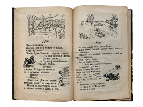 Как и большинство букварей все начинается с простых букв с картинками, которые постепенно переходят в слоги, слова, предложения и несложные тексты. На каждой странице букваря — иллюстрация, отражающая дух эпохи. Книга представляет историческую и культурную ценность!
