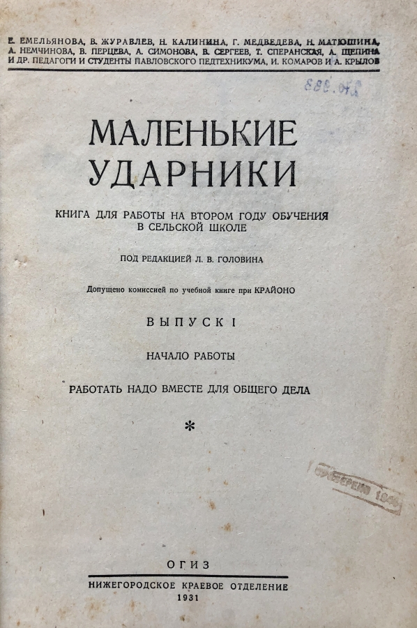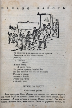 Книга для работы на 2 году обучения в сельской школе. Авторы учебника: Е.Емельянова, В.Журавлев, Н.Калинина, Г.Медведева, Н.Матюшина, А.Немчинова, В.Перцова, А.Симонова, В.Сергеев, Т.Сперанская, А.Щепина и другие. Также в составлении принимали участие педагоги и студенты Павловского пед. техникума И. Комаров, А. Крылов. Книга представляет историческую и культурную ценность!