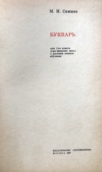 Для 1-го класса финно - угорских школ. Маргарита Ивановна Сажина родилась 5 мая 1929 года в селе Пажга Сыктывдинского района Коми АССР (в настоящее время — Республика Коми). В 1971 году защитила кандидатскую диссертацию и стала работать в должности старшего научного сотрудника. В 1978 году Маргарите Ивановне присвоено учёное звание «Старший научный сотрудник» по специальности «Методика преподавания русского языка и литературы в национальной школе». М. И. Сажина — кандидат педагогических наук. Автор учебников: «Букварь», «Азбука», «Коми кыв» для национальных школ.