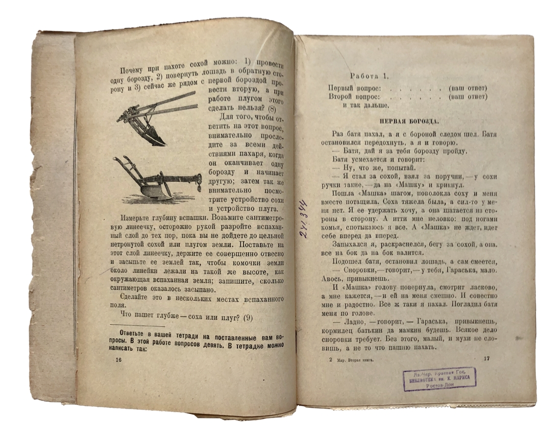 Рабочая книга для второго года обучения в городской школе. Составили: П. О. Афанасьев, С. П. Аржанов, А. М. Воронец, А. П. Пинкевич, К. П. Ягодовский. Под общей редакцией А. П. Пинкевича. Чтение и материалы для бесед и письменных работ. На каждой странице издания — иллюстрация, отражающая дух эпохи. Книга представляет историческую и культурную ценность!