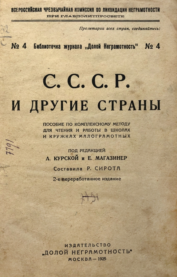 Пособие по комплексному методу для чтения и работы в школах и кружках малограмотных. Учебник, памятник эпохи, прекрасный образчик советской пропаганды. Книга на своем примере дает понять как на заре советской власти боролись с безграмотностью среди взрослого населения. Как была образована и получила развитие системы народного образования, бесплатного образования. Под редакцией А.Курской и Е.Магазинер. Книга представляет историческую и культурную ценность!