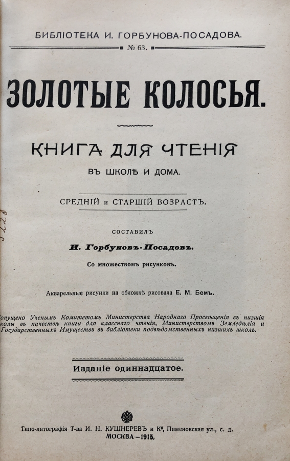 Книга для чтения в школе и дома со множеством рисунков. Книга содержит множество текстов на разные темы. Акварельные рисунки на обложке рисовала Е.М. Бем. Книга представляет историческую и культурную ценность!