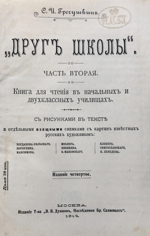 Книга для чтения в школе и дома со множеством рисунков. Книга содержит множество текстов на разные темы. С рисунками в тексте и отдельными снимками с картин известных русских художников: Богданова-Бельского, Гермашева, Маковского, Максимова, Мозлера и Шишкина. Книга представляет историческую и культурную ценность!