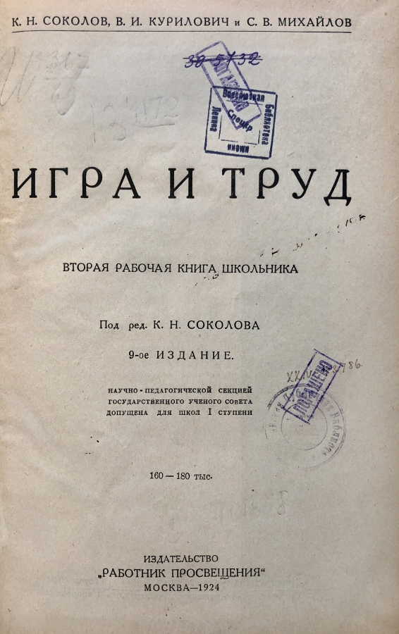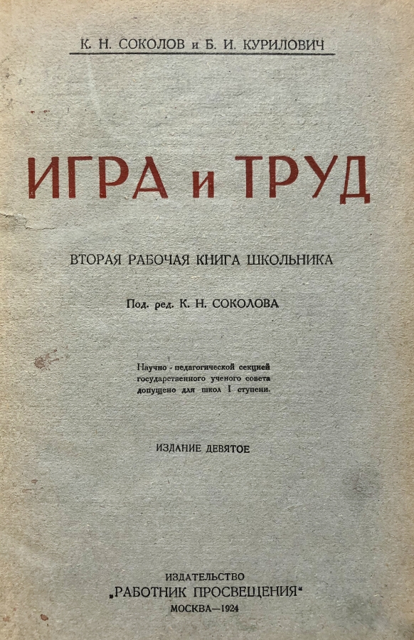 Игра и труд - вторая рабочая книга школьника. Учебное пособия для школ I ступени. В тексте множество черно-белых иллюстраций. Книга со множеством текстов на разные темы, поделенные на три отдела: Зимою, Весною, Летом. Книга представляет историческую и культурную ценность!