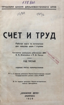 Рабочая книга по математике для сельских школ I ступени (3-й год). Из предисловия: При построении задачника имелось в виду, что если на пришкольном участке еще нет сада и огорода, то их надо создать силами самой школы, силами учащихся и учителя. Без такого школьного хозяйства многие работы по математике потеряют производственный характер, а это снизит ценность и смысл всей работы. Книга представляет историческую и культурную ценность!