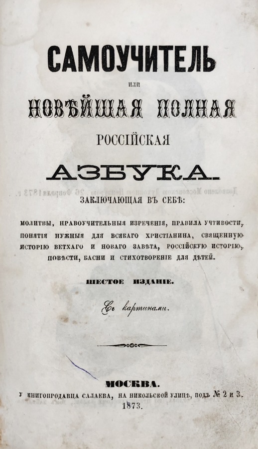 "Новейшая полная Российская Азбука" включает в себя: молитвы, нравоучительные изречения, правила учтивости, понятия нужные для христианина, священную историю Ветхого и Нового завета, российскую историю, повести, басни и стихотворения для детей. Книга представляет историческую и культурную ценность!
