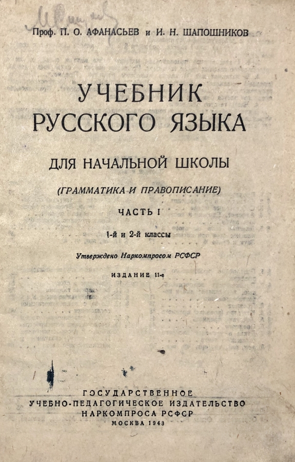 Учебник русского языка для начальной школы: грамматика и правописание. Шапошников создал несколько ценных методических пособий для учителей, которые выдержали более 20 изданий. Кроме учебников Шапошников выпустил много цветных наглядных пособий по развитию письменной и устной речи. Издание военного времени!