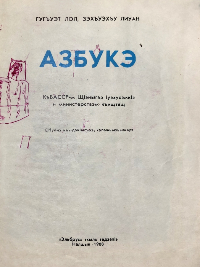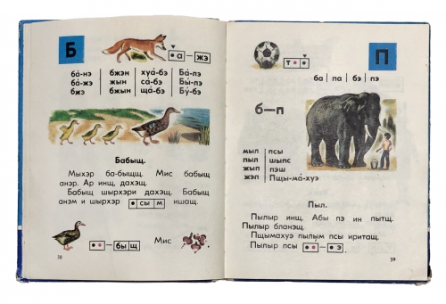 Пособие для обучения грамоте на карачаево-балкарском языке. Книга, по которой дети могли учиться читать и писать. Как и большинство азбук все начинается с простых букв с картинками, которые постепенно переходят в слоги, слова, предложения и несложные тексты. На каждой странице букваря — иллюстрация, отражающая дух эпохи. Карачаево-балкарская письменность за время своего существования несколько раз меняла свою графическую основу и неоднократно реформировалась. В настоящее время карачаево-балкарская письменность функционирует на кириллице.