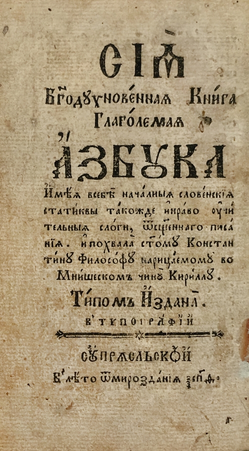 Супрасльская типография была основана в 1695 г. на территории Благовещенского монастыря. На протяжении 1772-1796 г. Супрасльская типография издала более 60 книг для русских староверов. Укрепить статус церковнославянского языка были призваны: «Букварь языка славенского» (1715, 1727, 1754, 1761, 1792), церковнославянская «Азбука» (1781, 1788) и другие издания. Книга представляет историческую и культурную ценность!