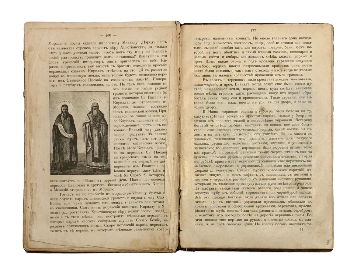 Владельческий переплёт, на крышку переплета наклеен фрагмент оригинальной обложки. Переплет оторван. Есть потертости на переплете. Блок расшатан. Страницы выпадают.