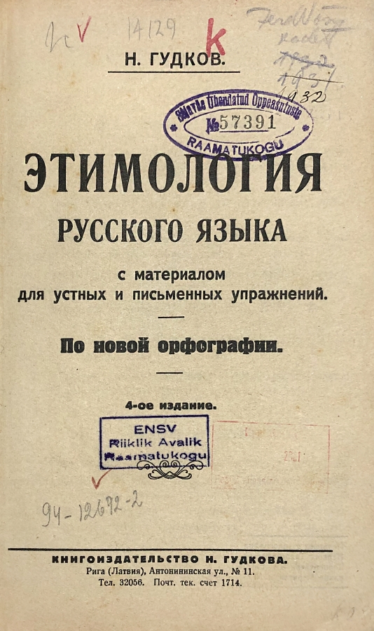 Этимология русского языка с материалом для устных и письменных упражнений. По новой орфографии. Николая Гудкова представляет собой фундаментальное исследование происхождения русских слов и закономерностей их развития. Книга представляет историческую и культурную ценность!