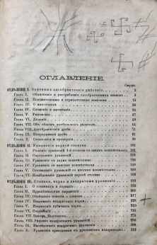 В составном владельческом переплёте эпохи. Сильные потёртости кожаного корешка и переплета. Блок оторван. Заломы на страницах. Владельческие пометки на страницах и форзацах.8-е изд.