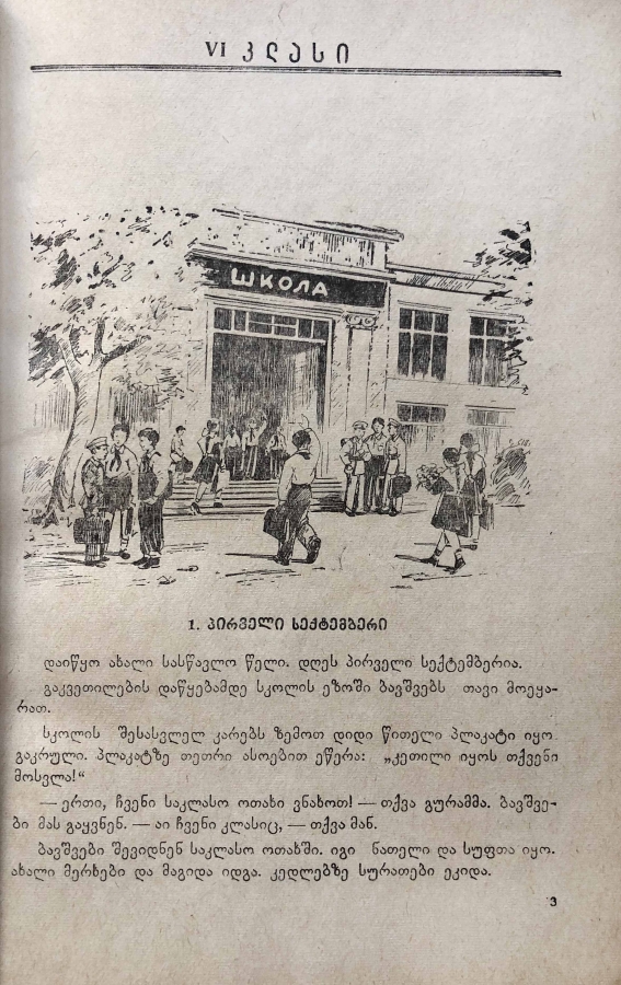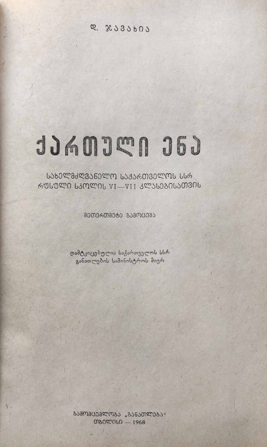 Учебник для VI-VII классов русской школы Грузинской ССР. Предлагаемая книга может быть использована всеми желающими совершенствоваться в практике грузинской разговорной речи, а также и учащимися негрузинских средних школ Грузии.