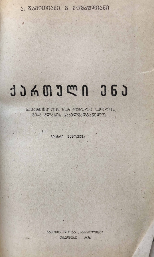 Учебник для 3 класса русской школы Грузинской ССР. Предлагаемая книга может быть использована всеми желающими совершенствоваться в практике грузинской разговорной речи, а также и учащимися негрузинских средних школ Грузии.