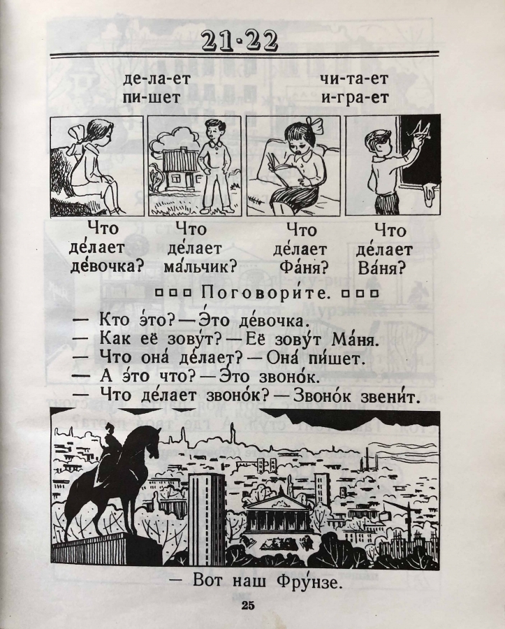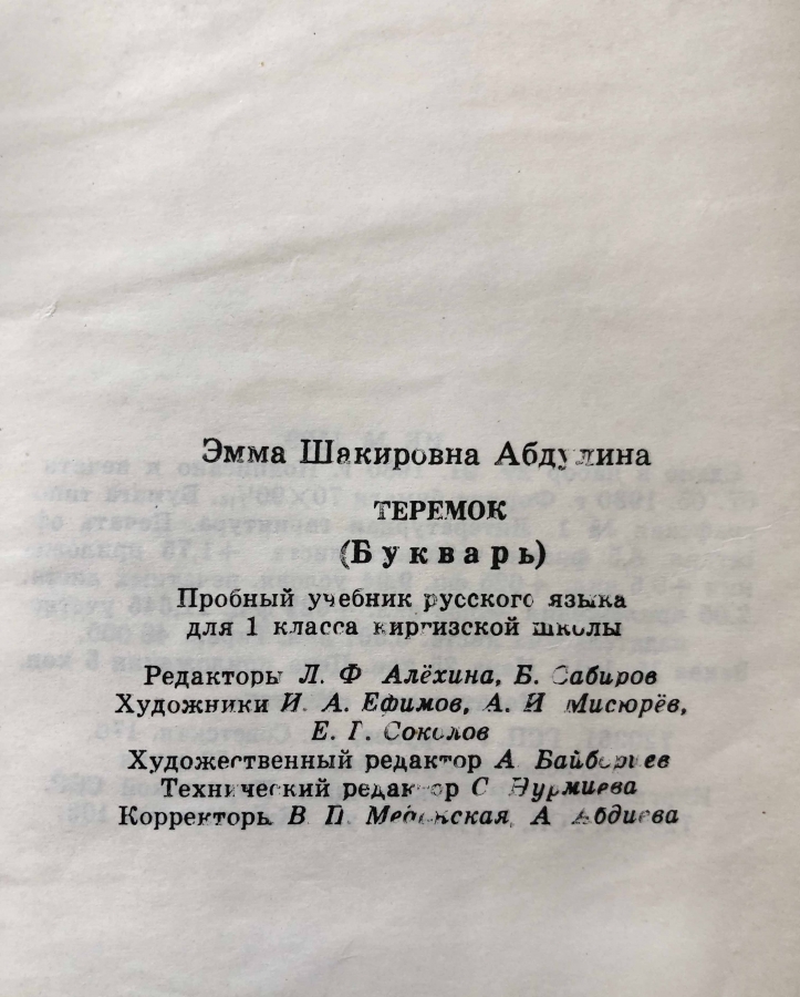 Пробный учебник русского языка для 1 класса киргизской школы. Утверждён Министерством просвещения Киргизской ССР.