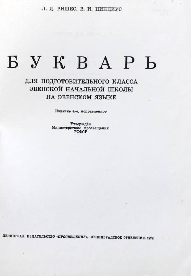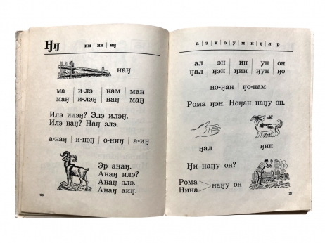 Учебник для подготовительного класса начальной школы на эвенском языке. Эвенская письменность — письменность, используемая для записи эвенского языка. За время своего существования функционировала на разных графических основах и неоднократно реформировалась. В настоящее время эвенская письменность функционирует на кириллице. В 1920-е годы в СССР начался процесс латинизации письменностей. В 1936—1937 годах эвенский латинизированный алфавит, как и другие алфавиты народов СССР, был заменён кириллическим алфавитом, который содержал все русские буквы и диграф Нг нг.