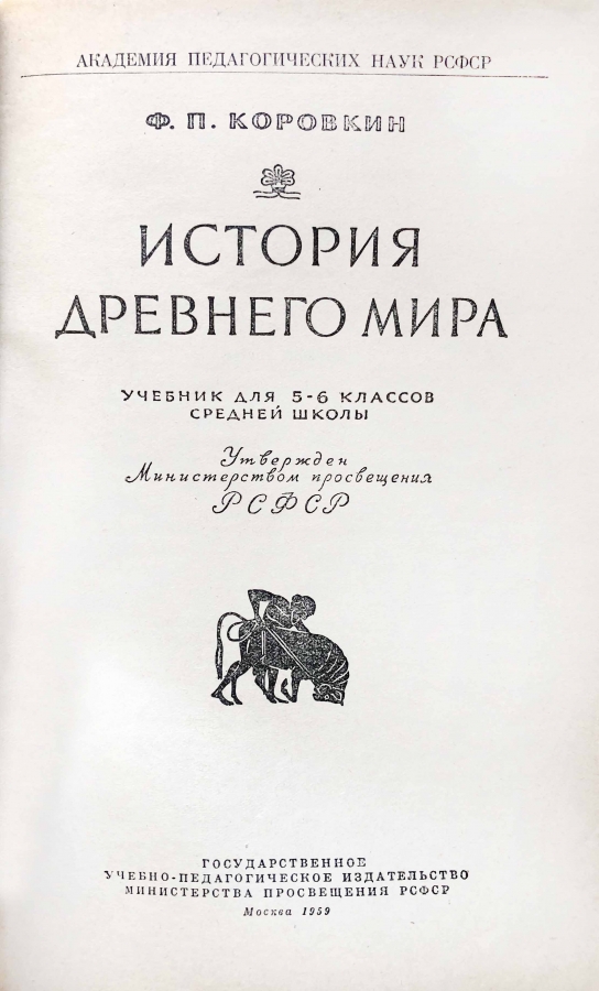 Учебник для 5-6-го классов средней школы. Учебник состоит из следующих разделов: Древний восток, Древняя Греция и Древний Рим.