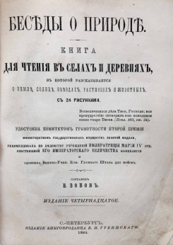 Книга для чтения в селах и деревнях, в которой рассказывается о земле, солнце, звездах, растениях и животных. С 24 рисунками.