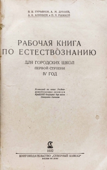 Рабочая книга по естествознанию для городских школ первой ступени, 4 год обучения.