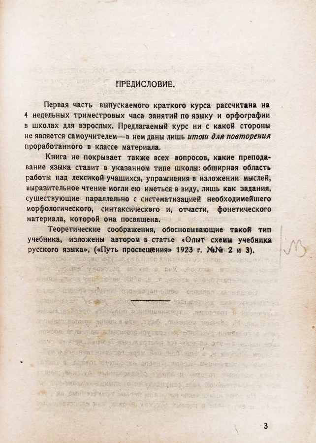 Предисловие: Первая часть выпускаемого краткого курса рассчитана на 4 недельных триместровых часа занятий по языку и орфографии в школах для взрослых. Предлагаемый курс не является самоучителем — в нем даны лишь итоги для повторения проработанного в классе материала.