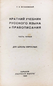 Книга "Краткий учебник русского языка и правописания" для школы взрослых