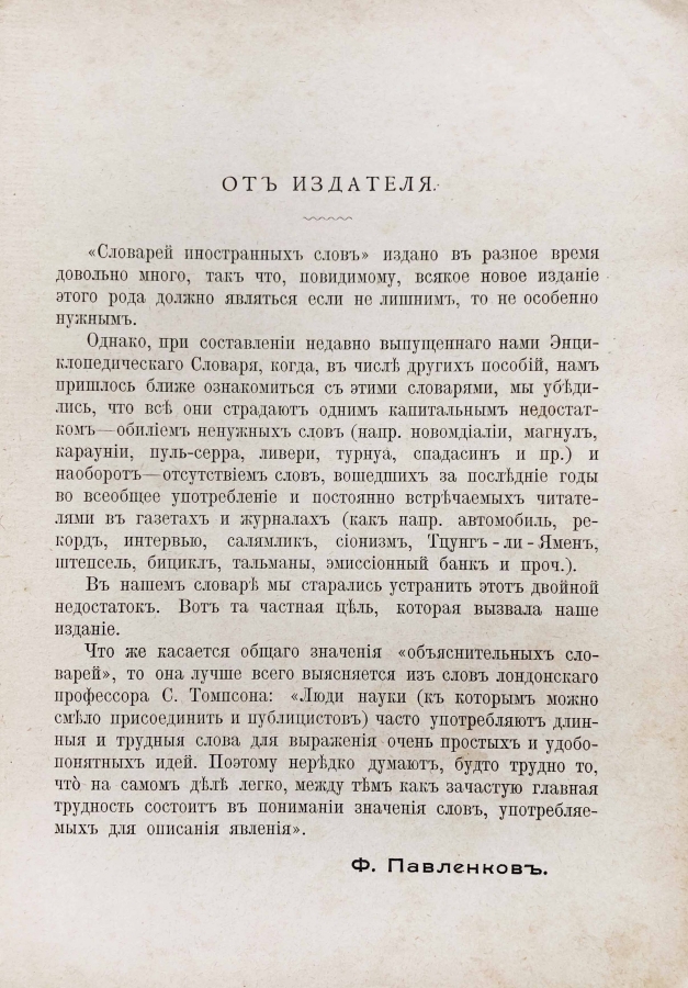 Словарь составлен по Энциклопедическому словарю Ф.Павленкова, с соответствующими сокращениями в объяснении слов и добавлениями в их числе.