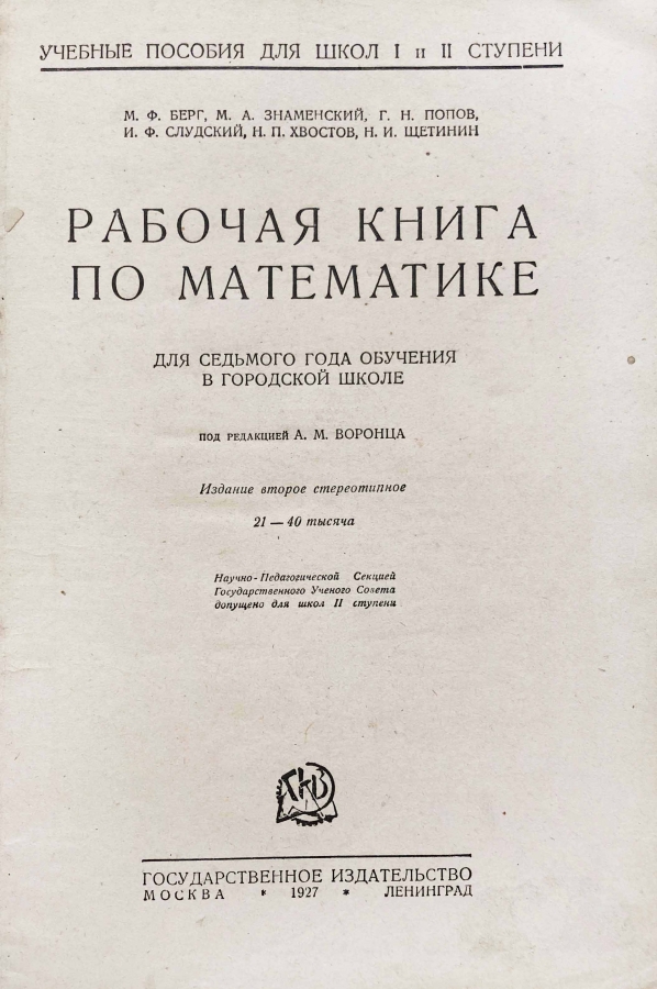 Настоящее пособие является учебником для 7 класса школ городского типа по математике. Книга содержит теоретический материал по программе математики за 7 класс и задачи после каждой темы. Пособие будет интересно как учащимся, так и педагогам по математике. Кроме того, данная книга привлечет внимание специалистов по истории преподавания математики в школе.