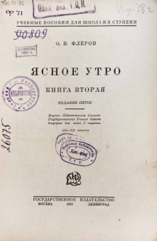 Всеволод Александрович Флеров — русский педагог и литератор, деятель народного образования. В профессиональной среде известен как автор выдержавшего 41 издание «Нового русского букваря» (1906). "Ясное утро" — это первая после букваря книга для классного чтения. Книга содержит рисунки, прописи и тексты для чтения.