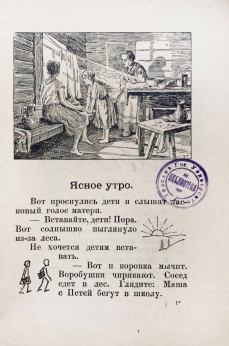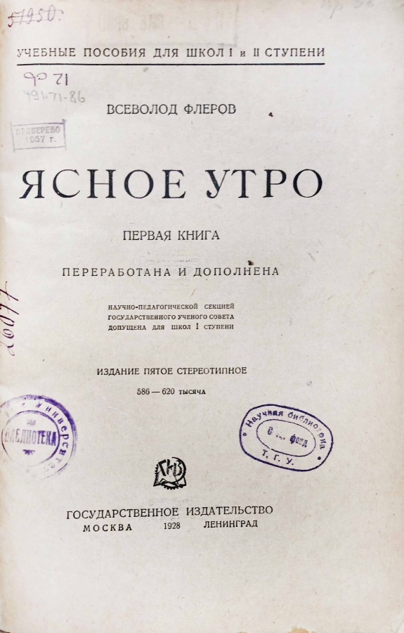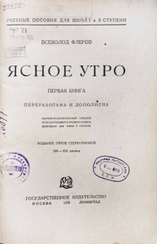 Всеволод Александрович Флеров — русский педагог и литератор, деятель народного образования. В профессиональной среде известен как автор выдержавшего 41 издание «Нового русского букваря» (1906). "Ясное утро" — это первая после букваря книга для классного чтения. Книга содержит рисунки, прописи и тексты для чтения.