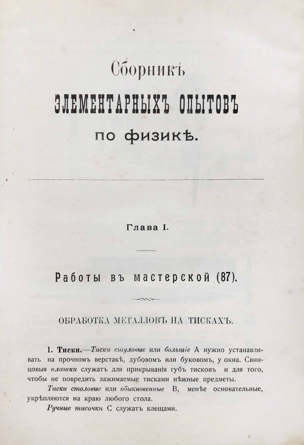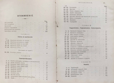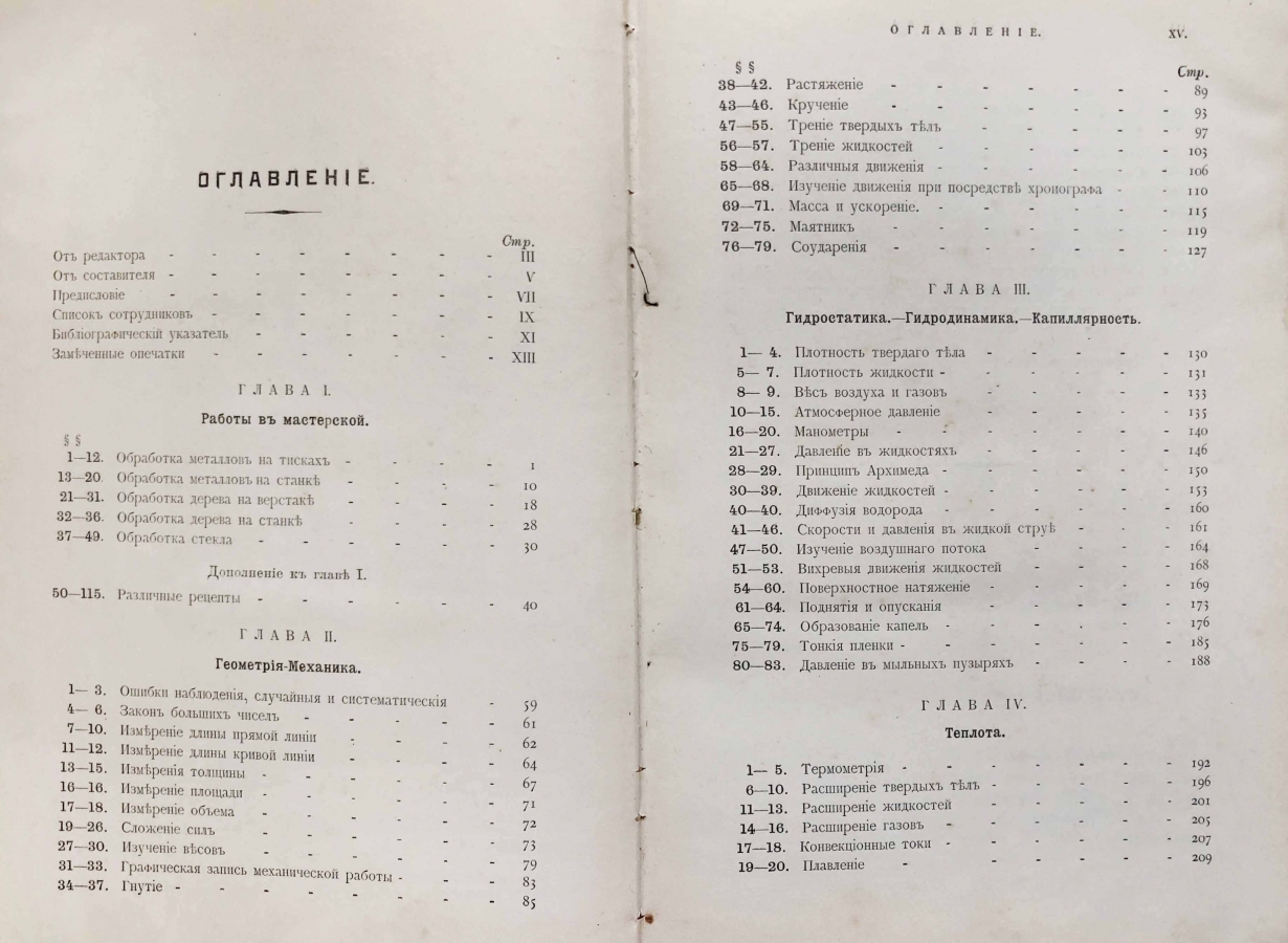 В книге рассмотрены темы: Работы в мастерской, Геометрия и механика, Гидростатика, Теплота.