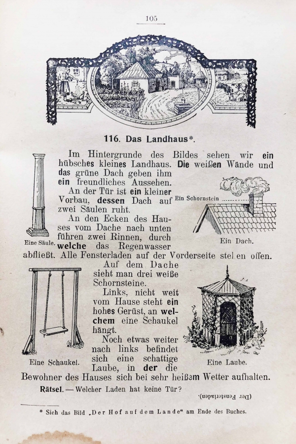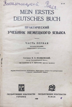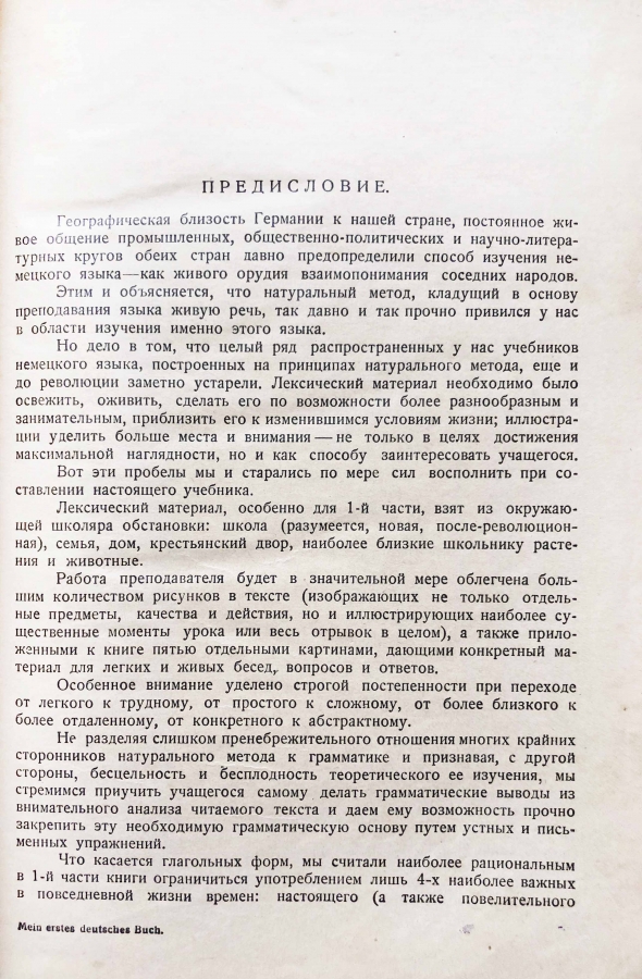 Из предисловия: Географическая близость Германии к нашей стране, постоянное живое общение промышленных, общественно-политических и научно-литературных кругов обеих стран давно предопределили способ изучения немецкого языка как живого орудия взаимопонимания соседних народов. Этим и объясняется, что натуральный метод, кладущий в основу преподавания языка живую речь, так давно и так прочно привился у нас в области изучения именно этого языка.