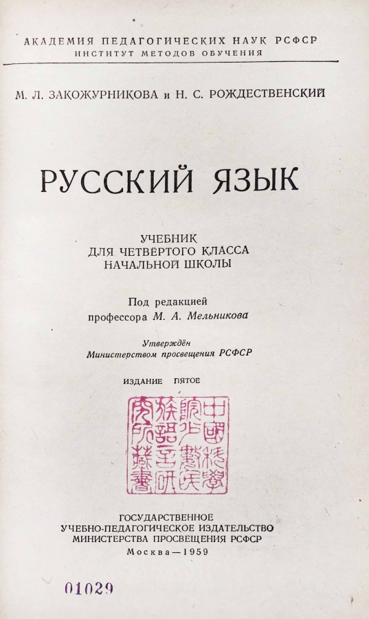 Учебник для четвертого класса начальной школы. Утвержден министерством просвещения РСФСР. В учебнике даны темы: Имя прилагательное, Личные местоимения, Глагол, Наречие, Предложение.
