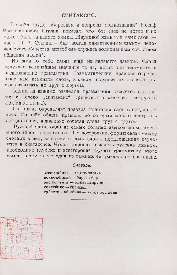 Из предисловия: Русский язык, один из самых богатых языков мира, имеет много типов предложений. Их построение, формы связи между словами в них, значение и роль слов в предложениях изучаются в синтаксисе. Чтобы хорошо овладеть русским языком, необходимо глубоко и всесторонне изучить грамматику этого языка, в том числе один из важных её разделов — синтаксис.